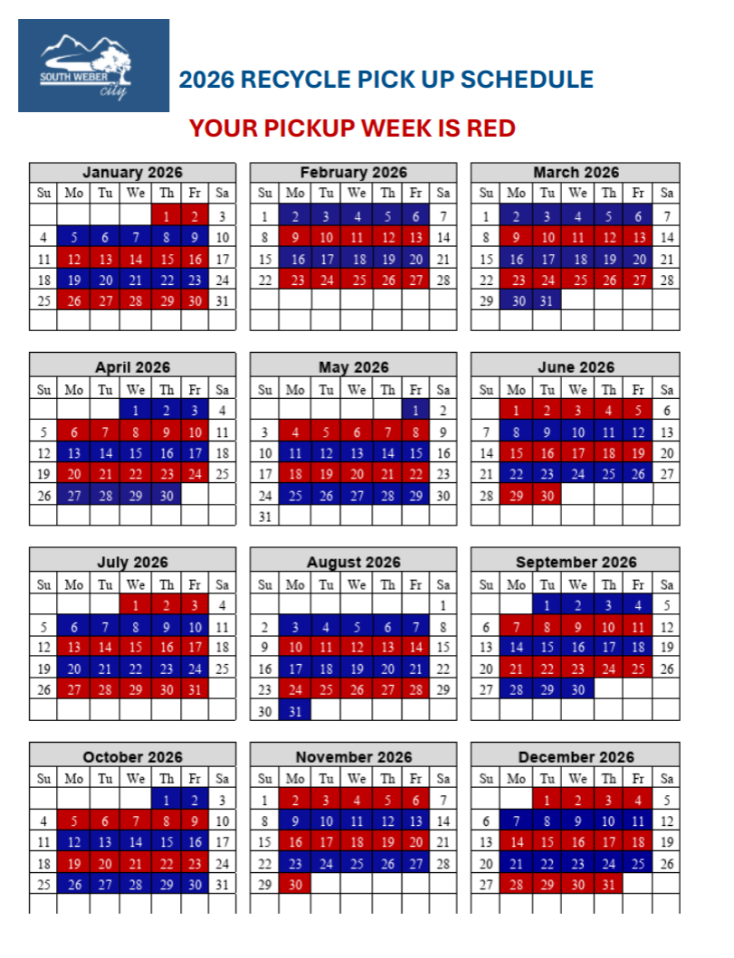 To help extend the life of the Davis Landfill, South Weber will be implementing a new Residential Recycling Program. We are excited to make it easier than ever to reduce waste, protect our environment, and plan for the future of our community.